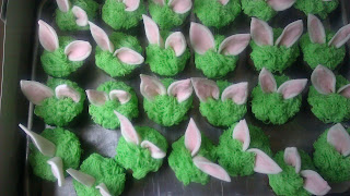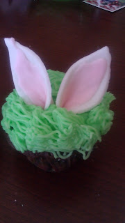 So back to baking, Samantha and I baked yesterday. First we had a failed cupcake batter (it was too heavy and just didn’t taste right). Then we found a yummy Devils Food Chocolate cupcake recipe and started again and we had success. Next we really wanted to do something cute and fun on the cupcakes so we hunted for something we could do with fondant but nothing caught our fancy so we came up with this idea of the rabbit just poking his little ears out of the bunny hole. It was our first attempt with fondant and we NOT in love with that stuff at all…..until we had a bit of success and things began rolling along. We disliked working with fondant so much we were only going to make five of whatever we came up with and just frost the rest, but as this idea came along and we started rolling and shaping it began to turn to fun. My daughter got lots of practice making grass with the right frosting tip and I think she gained some muscle too. We both got practice with rolling and shaping bunny ears from fondant, nothing fancy I know but we are pleased with our completed cupcake and we had loads of fun working together. =D
