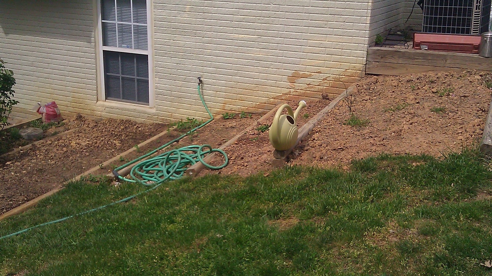 | This area was here last year but dh expanded out and also added that larger bottom row. In here so far we have peas. |