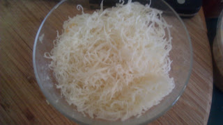 1 Cup Pecorino Romano (I just use the fine hand shredder for this one)