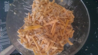 3 Cups Sharp Cheddar Cheese (I use the larger shredding tool)